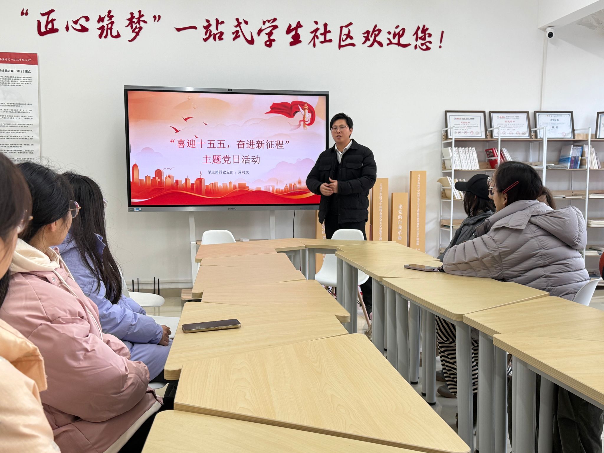 为深入学习贯彻“十五五”规划精神,凝聚青年党员奋进力量。近日,ok138cn太阳集团529学生党支部以“喜迎十五五,奋进新征程”为主题,在“一站式”学生社区召开专题学习研讨会。支部党员、入党积极分子参会,支部书记周司文主持会议。