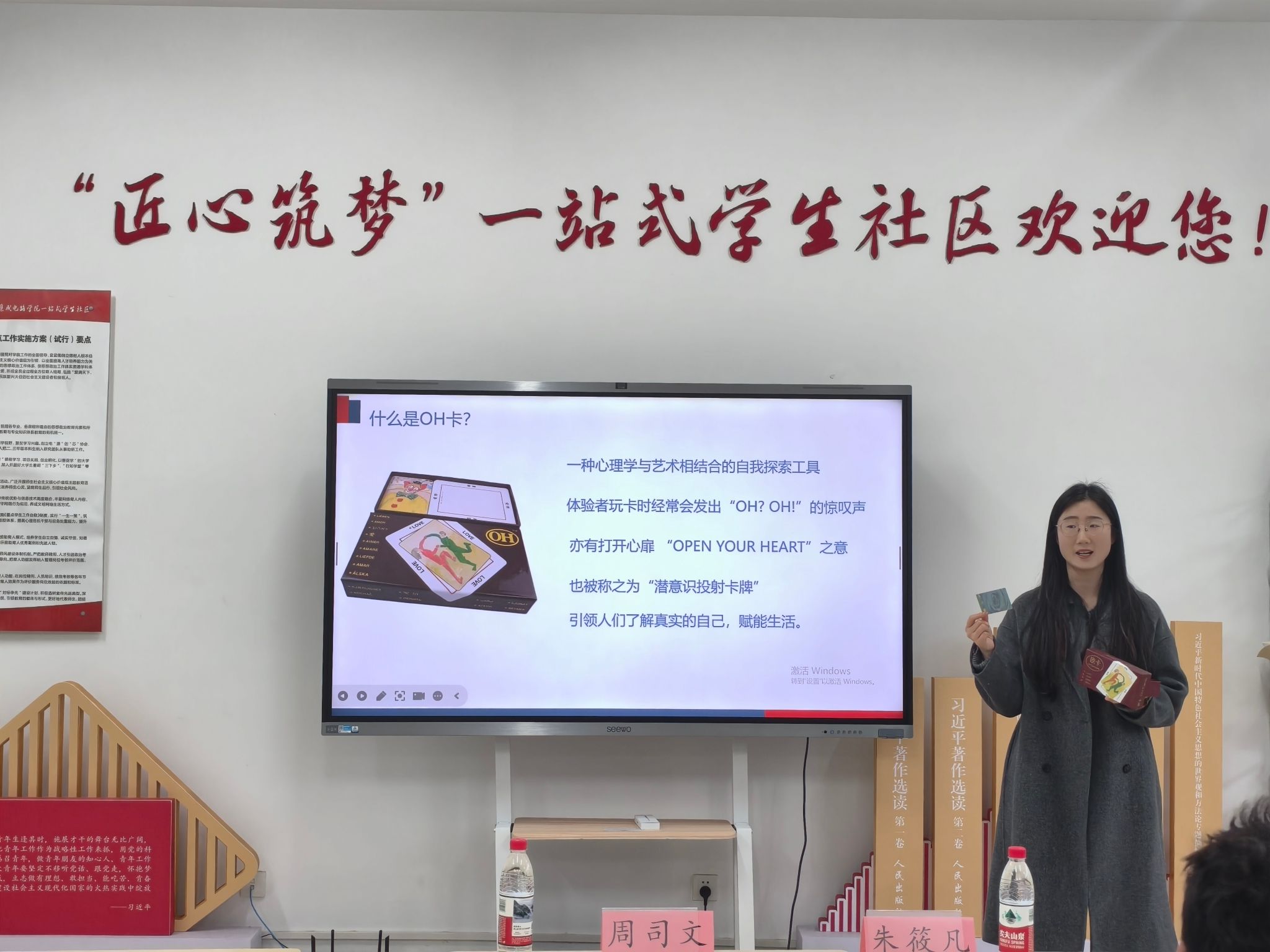 随后,朱筱凡老师带来“通过OH卡探索自我意识”心理健康专题团课,以专业、生动的形式为同学们送上心理关怀。课堂上,朱筱凡借助OH卡这一专业心理工具,通过趣味互动、分组分享、深度引导等方式,带领同学们走进内心世界,帮助大家更清晰地认识自我、接纳自我,有效提升情绪调节能力与心理调适水平,为青年学生健康成长注入温暖力量,筑牢心理健康屏障。