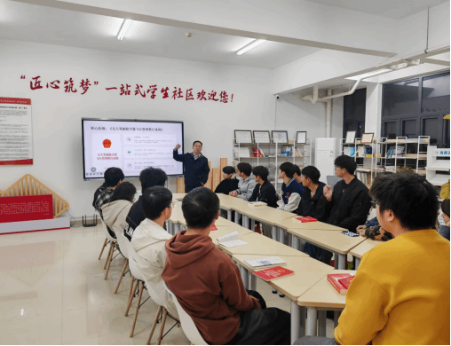 分享会上,四位同学分别围绕《习近平法治思想学习纲要》《中华人民共和国宪法》《中华人民共和国网络安全法》《中国法律与中国社会》等法治经典,分享学习感悟。学院兼职辅导员、党政办法治科胡强胜老师领学《法学野渡》,并结合《中华人民共和国网络安全法》《无人驾驶航空器飞行管理暂行条例》等法律法规,重点剖析国家安全相关法律条文。他通过鲜活案例,讲解网络信息安全和无人机飞行管理规定,提醒同学们规范网络言行、保护国家秘密与个人信息,防范网络诈骗与泄密风险,明确禁飞区域及违规飞行等可能危害国家安全的法律后果,引导大家自觉维护空域安全与社会稳定。